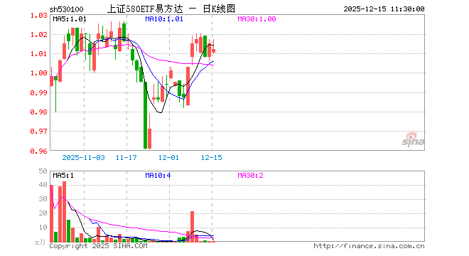 上证580ETF易方达(530100)业绩比较基准为上证580指数收益率,管理人为易方达基金管理有限公司,基金经理为李博扬,成立(2025-10-10)以来回报为1.84%,近一个月回报为0.40%。